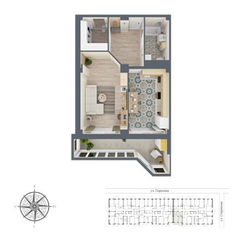 ЖК ARBAT City находится в 5 минутах езды от центра г.Черкесска, по адресу ул. Парковая, 10 Данная локация сочетает в себе все необходимые преимущества для жизни: тихий спальный район с развитой инфраструктурой. Покупая квартиру в ЖК ARBAT City наши клиенты могут быть полностью уверены в наличии современных условий, гарантирующих комфортную и удобную жизнь для всей семьи Кроме того, доступное транспортное сообщение и уже существующая основная инфраструктура делают район еще более удобным для проживания. При строительстве данного ЖК используются качественные строительные материалы, передовые технологии строительства и продуманные до мелочей планировки. Благодаря обустроенной внутридомовой территории Вы всегда сможете насладиться отдыхом в спокойной и уютной атмосфере. В непосредственной близости от жилого комплекса располагаются остановки маршрутных такси и другого общественного транспорта, которые связывают его с различными районами нашего города. Всех жителей, а особенно семьи с маленькими детьми, обрадует большой закрытый двор с детской площадкой, а также зоны для активного и спокойного отдыха. 1-комнатная квартира в Черкесске.