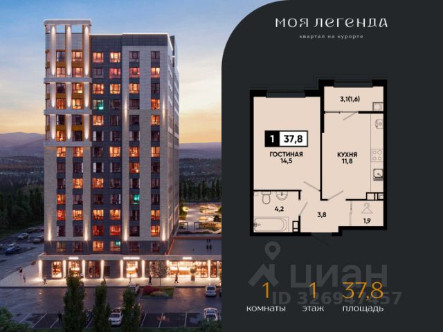 Представляем уютную 1комнатную квартиру в уникальном курортном квартале "Моя Легенда" с продуманной планировкой, которая идеально подходит для жизни, отдыха и инвестиций.