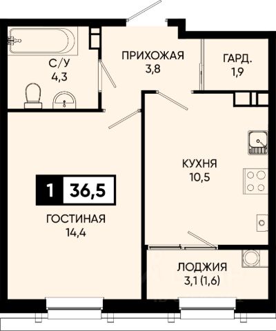 1комнатная квартира в ЖК "Моя Легенда" — курортная жизнь с готовым ремонтом от федерального застройщика ЮгСтройИнвест!