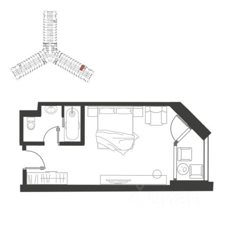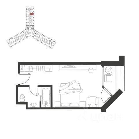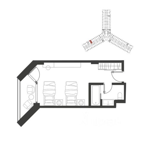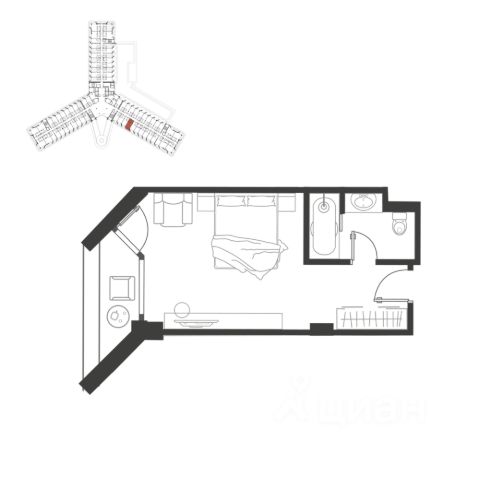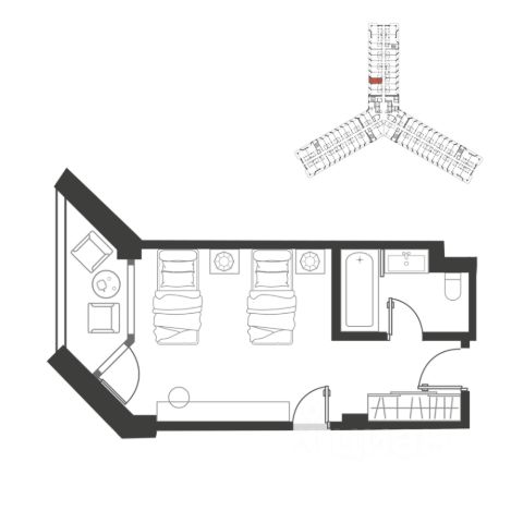 Продаётся студия-апартаменты в сданном доме (Дом 81), срок сдачи: III-кв. 2012, общей площадью 33 кв.м., на 5 этаже.