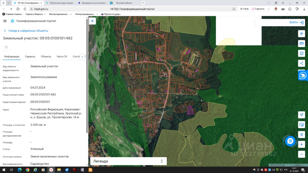 право заключения договора аренды земельного участка из земель населенных пунктов, кадастровый номер 09:05:0100101:482, площадью 3000 кв.м, разрешенное использование -садоводство, расположенный по адресу: Российская Федерация, Карачаево- Черкесская Республика, Урупский район, х. Ершов, ул. Пролетарская, 14 "в"