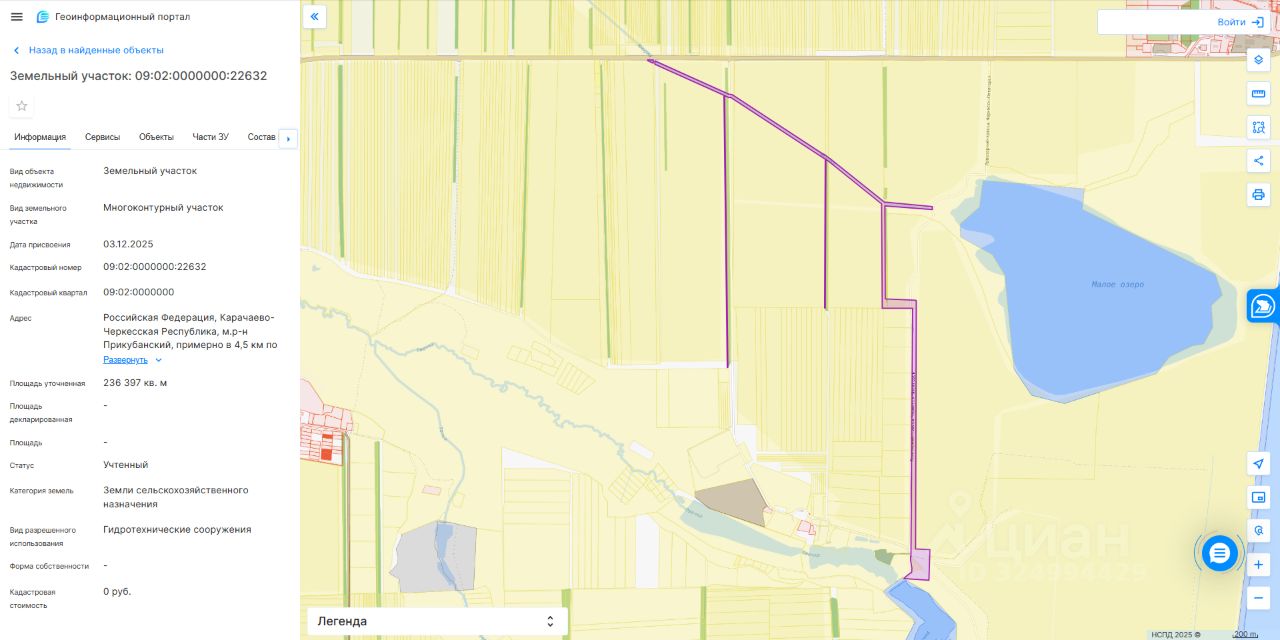 09:02:0000000:22632 Площадь: 236397 кв.м; Местоположение (адрес): Российская Федерация, Карачаево-Черкесская Республика, м.р-н Прикубанский, примерно в 4,5 км по направлению на запад от п. Кавказский