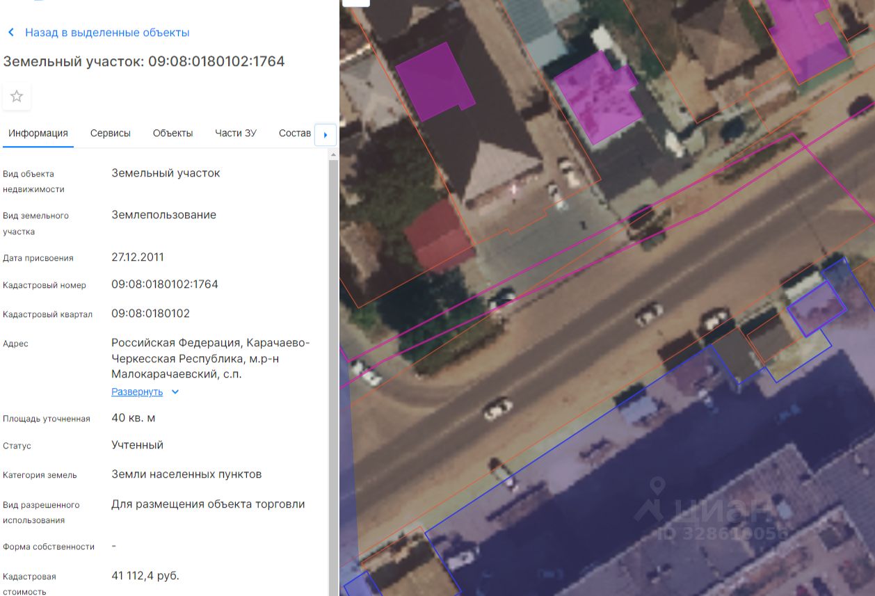 Земельный участок с кадастровым номером 09:08:0180102:1764 площадь 40 по адресу Российская Федерация, Карачаево-Черкесская Республика, м.р-н Малокарачаевский, с.п. Учкекенское, с. Учкекен, ул. Ленина, з/у 5Т