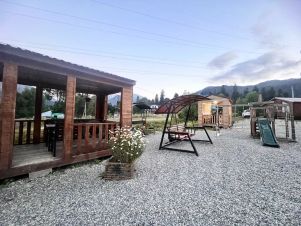 На территории базы протекает речка (рыбалка платно), имеются парковка, зоны барбекю, беседки и детская площадка.