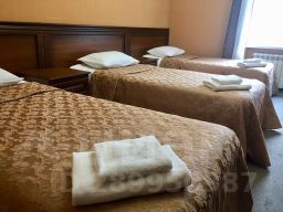 Трехместный номер стандарт с 3 односпальными кроватями имеет мини-холодильник, LCD-телевизор со спутниковыми каналами, ванная комната, с банными косметическими наборами, письменный стол, прикроватные тумбочки, шкаф, чемоданница.