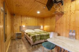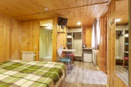 Улучшенный однокомнатный номер площадью 19 кв.м с двумя раздельными кроватями или одной кроватью размера "Qween-Size". Идеально подходит для проживания одного или двух гостей. Отличается от Стандартного Шале увеличенной площадью. Каждый номер имеет изолированный коридор площадью 3-3,5 кв.м для хранения горных лыж и других вещей.