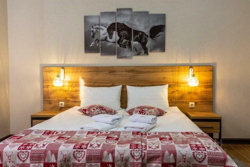 В распоряжении гостей 45 номеров различной категории со всеми необходимыми удобствами: удобное спальное место, рабочий стол, телевизор с плоским экраном, чайник, собственная ванная комната. Гостям предоставляются постельное белье, полотенца, тапочки, халаты и бутилированная вода. Из окон номеров открывается потрясающий вид на горы. Wi-Fi работает на всей территории.