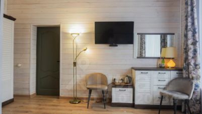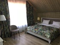 Отделка номера выполнена из местных пород древесины, с яркими и нежными оттенками светлых тонов. В номере: широкая двуспальная кровать King-size, два кресла, телевизор, тумбы прикроватные, шкаф для одежды, подставка для хранения багажа, вешалка с крючками для верхней одежды.