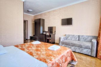 Расположены на 3 этаже вид на горы и реку. В номере: одна двуспальная кровать, прикроватные тумбочки, светильники, туалетный столик, стул, телевизор, шкаф для одежды, электрочайник, набор посуды. Санузел: туалет, раковина, ванна, набор полотенец, туалетные и мыльные принадлежности, тапочки.