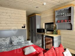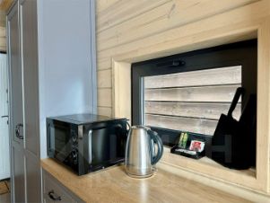 Номер отлично подойдёт для 2 взрослых и 1 ребёнка. В нём двухспальная кровать и тахта. Здесь есть всё для вашего удобства - от кухонного уголка с мультиваркой и микроволновкой до тёплых полов в ванной комнате. Отличная шумоизоляция, индивидуальная система отопления, балкон.