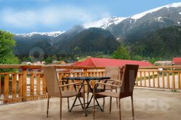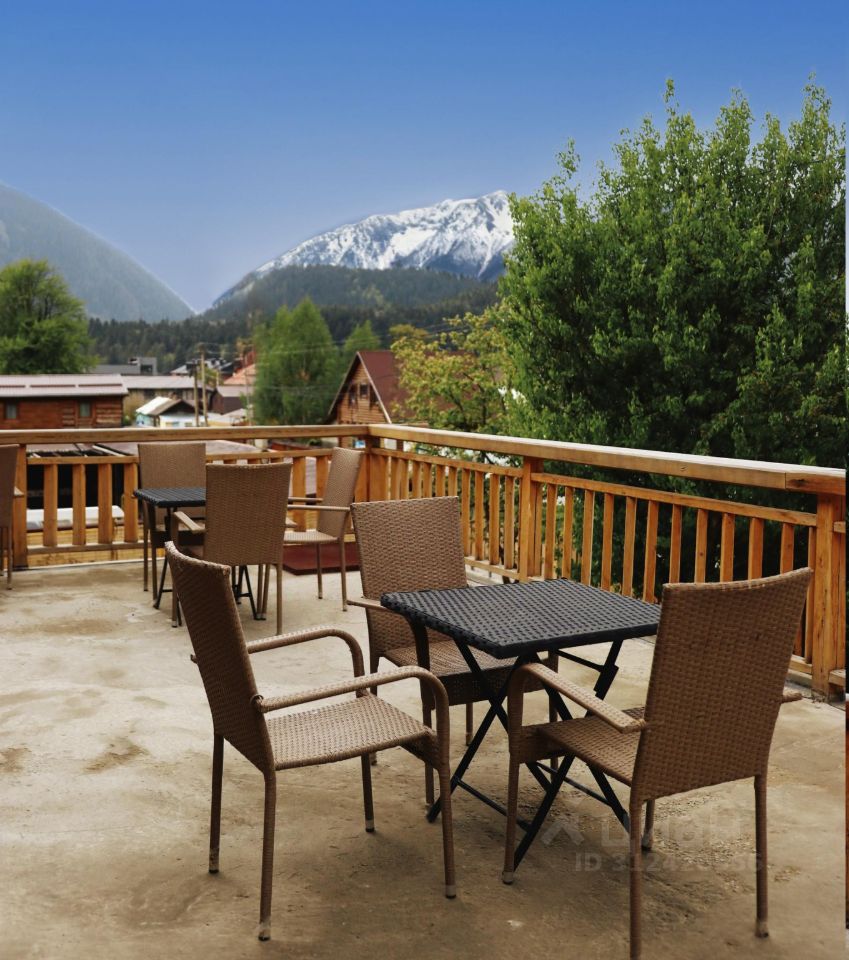 Номер находится на 2 этаже. Из номера можно выйти на балкон и напрямую пройти к террасам, где можно посидеть и попить чай/кофе, наслаждаясь видами на окружающие горы Архыза.