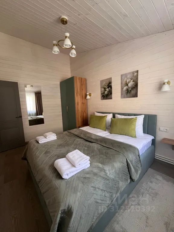 В домике одна двуспальная кровать, двухместный раздвижной диван, смарт-ТВ, Wi-Fi.