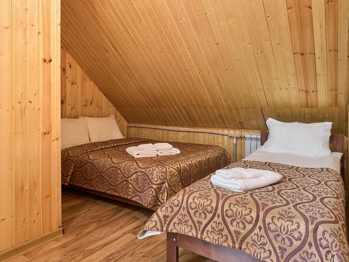 Пятиместный семейный номер. В номере три одноместные кровати, двуспальная кровать и диван-кровать, который можно использовать по запросу в качестве дополнительного спального места.