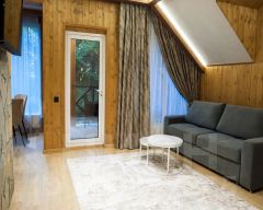 Номер уютно обставлен и оснащён необходимым, чтобы отдохнуть после долгого и насыщенного дня. Имеются телевизор и халат. Оснащение зависит от выбранной категории номера.