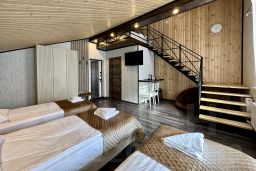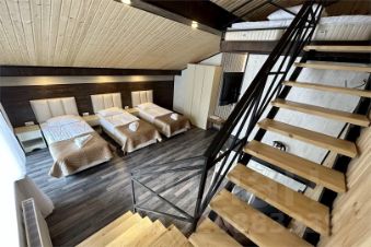 Просторные двухуровневые номера с потрясающим видом на горы, расположены на 5 этаже. Отличный вариант для большой семьи или компании друзей.