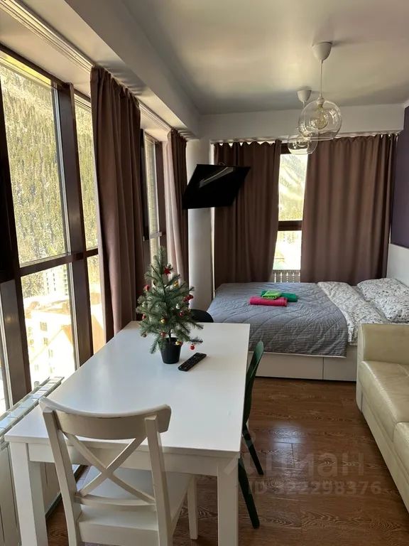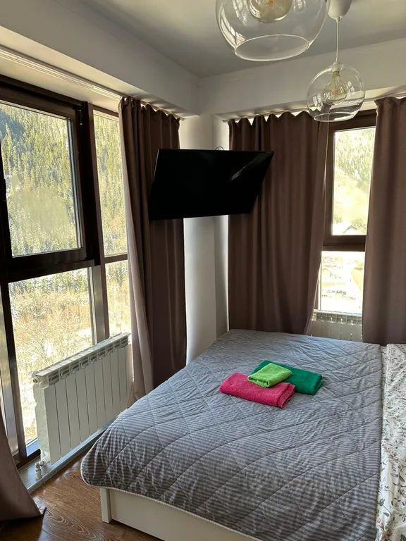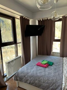 Апартаменты в гостиничном комплексе Вершина. В двух минутах от канатной дороги. Панорамные окна с видом. В квартирах есть все необходимое для комфортного проживания, включая постельное белье, полотенца, средства личной гигиены, обеденная зона со всеми кухонными принадлежностями.