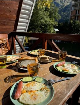 Рядом находятся лес и речка, кафе, магазины, канатная дорога, всё в шаговой доступности.