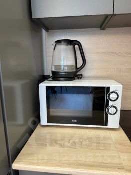 - Холодильник, варочная панель 2-х конфорная, микровалновая печь, чайник, стиральная машина, полотенцесушитель, два телевизора,боллер, фен.