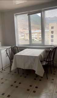 Кухня большая, светлая. Есть вся посуда для приготовления пищи.