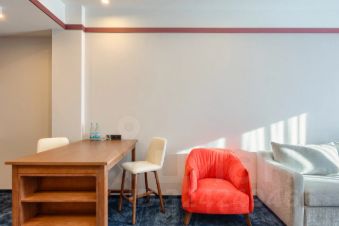 Апартамент - функциональный номер площадью от 38 кв.м. Идеально подходит для комфортного и уютного отдыха. Номер включает спальную зону с большой двуспальной кроватью (либо двумя односпальными кроватями) , а также гостиную с диваном и стильным журнальным столиком — идеальное место для расслабления после насыщенного дня.