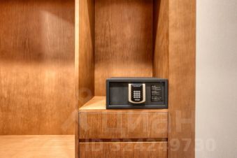 Пол покрыт мягким синим ковролином, придающим номеру теплую и стильную атмосферу. Для хранения одежды и личных вещей предусмотрен вместительный гардероб, а ценные предметы можно разместить в электронном сейфе. Гости также могут воспользоваться мини-баром с разнообразными напитками и закусками (по запросу).