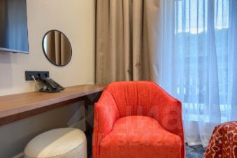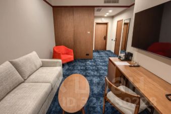 Джуниор Сюит — просторное пространство площадью от 35 кв.м, идеально сочетающее комфорт и стиль. В номере расположена большая двуспальная кровать с качественным постельным бельём, а в зоне отдыха есть удобный диван и стильный журнальный столик — идеальное место для расслабления после насыщенного дня.