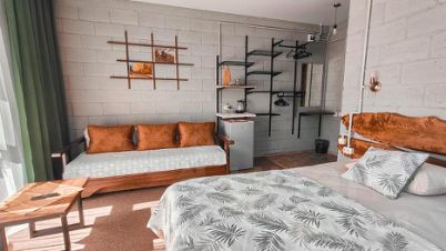 Для размещения гостей предлагаются номера категории Стандарт Улучшенный с террасой. Все номера оборудованы удобным спальным местом, стильной мебелью, телевизором с плоским экраном, индивидуальной ванной комнатой с душем и феном. Для гостей приготовлены наборы полотенец .
