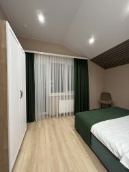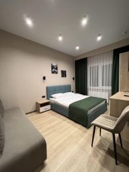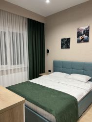 Для бронирования доступны комнаты категорий Эконом, Стандарт и Семейные, а также апартаменты категорий Стандарт и Улучшенные. Для любителей уединенного отдыха имеется отдельный коттедж. Комнаты оснащены всем необходимым для полноценного отдыха и сочетают в себе городской комфорт и загородную атмосферу. В спальнях удобные кровати, дополнительные диваны, тв, холодильники, чайные станции.