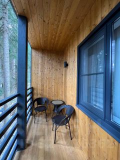 Для гостей предусмотрены завтраки по меню. Также имеется общая кухня, оборудованная всей нужной для самостоятельной готовки техникой. К услугам отдыхающих теплые мангальные комнаты, а также открытые террасы, оборудованные мангалами и всем необходимым для отдыха на природе. На территории есть детская площадка, батут, беседки-шатры, качели. В зимний период гостям предоставляется комната для хранения и сушки спортивного оборудования, а также прокат тюбингов по приятным ценам. На территории имеется гостевая парковка.