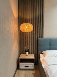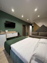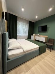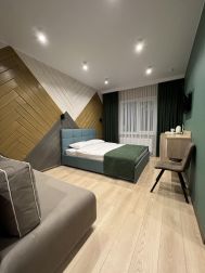 Для бронирования доступны комнаты категорий Эконом, Стандарт и Семейные, а также апартаменты категорий Стандарт и Улучшенные. Для любителей уединенного отдыха имеется отдельный коттедж. Комнаты оснащены всем необходимым для полноценного отдыха и сочетают в себе городской комфорт и загородную атмосферу. В спальнях удобные кровати, дополнительные диваны, тв, холодильники, чайные станции.