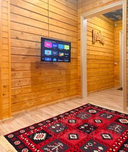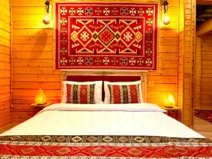Двухместный комфортный номер, выполненный из экологичного бруса, отличается тёплой атмосферой и естественным уютом. Натуральная фактура древесины создаёт ощущение близости к природе, при этом предполагая некоторую слышимость — характерную особенность деревянных интерьеров.