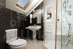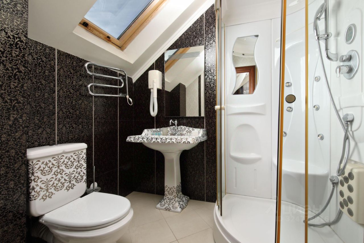 Санузел: душ-шарко, туалет, раковина, халаты, полотенца, тапочки, набор для душа, бритвенный набор, косметический набор, швейный набор, фен.