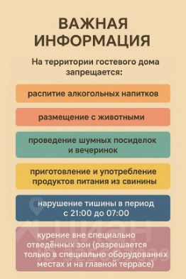 Наш гостевой дом ориентирован на создание комфортных условий для спокойного семейного отдыха. В связи с этим на территории гостевого дома запрещено: