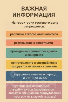 Наш гостевой дом ориентирован на создание комфортных условий для спокойного семейного отдыха. В связи с этим на территории гостевого дома запрещено: