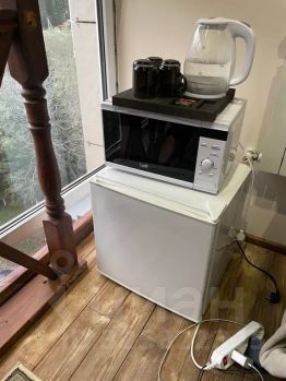 - В номере есть шкаф для вещей, холодильник, чайник, микроволновая печь и фен.