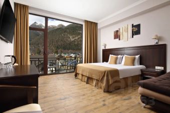Собственный балконс уличной мебелью — пространство для утреннего кофе или вечернего чаепития с панорамным видом на горные виды.