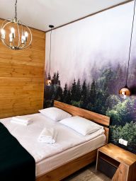Двухкомнатные апартаменты класса Люкс в корпусе Панорама. В номере есть все необходимое для комфортного проживания. Кухонный блок - варочная панель, холодильник, микроволновая печь, посуда, соль, сахар, чай и т.д. Современный санузел. В номере 1 двуспальная кровать и раскладной диван. Вместимость номера 4 человека.