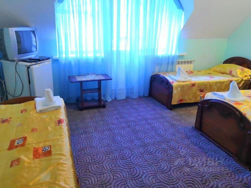Уютный номер, оборудованный всем необходимым для комфортного проживания. В номере: три 1,5-спальные кровати, прикроватные тумбочки, светильники, шкаф для одежды, кресло, журнальный столик, стулья, холодильник, телевизор. Санузел с душем, туалетные принадлежности, набор полотенец.