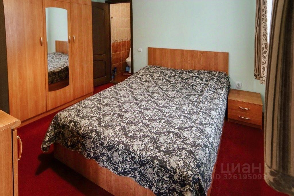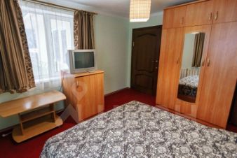 В номере: двуспальная кровать, две тумбочки, телевизор, холодильник, шкаф, ванная комната с туалетными принадлежностями.