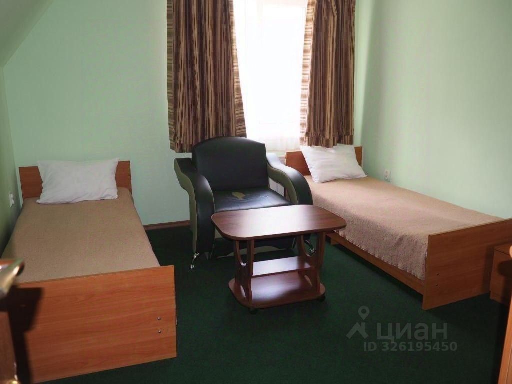 В номере: две односпальные кровати, две тумбочки, телевизор, холодильник, шкаф, ванная комната с туалетными принадлежностями.