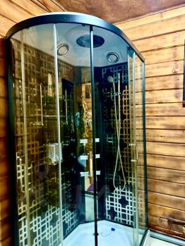 - Ванная комната премиум-класса. Пространство для релаксации с современной гидромассажной кабинкой — идеальное решение для восстановления сил после дня, полного впечатлений.