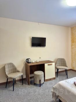 Для вашего комфортного сна предусмотрена полноценная двуспальная кровать. Интерьер дополняют два мягких стула, в которых так приятно устроиться с чашкой горячего чая после прогулки. В номере есть всё необходимое: современный телевизор, электрочайник и набор кружек. Индивидуальный санузел оборудован душевой кабиной.