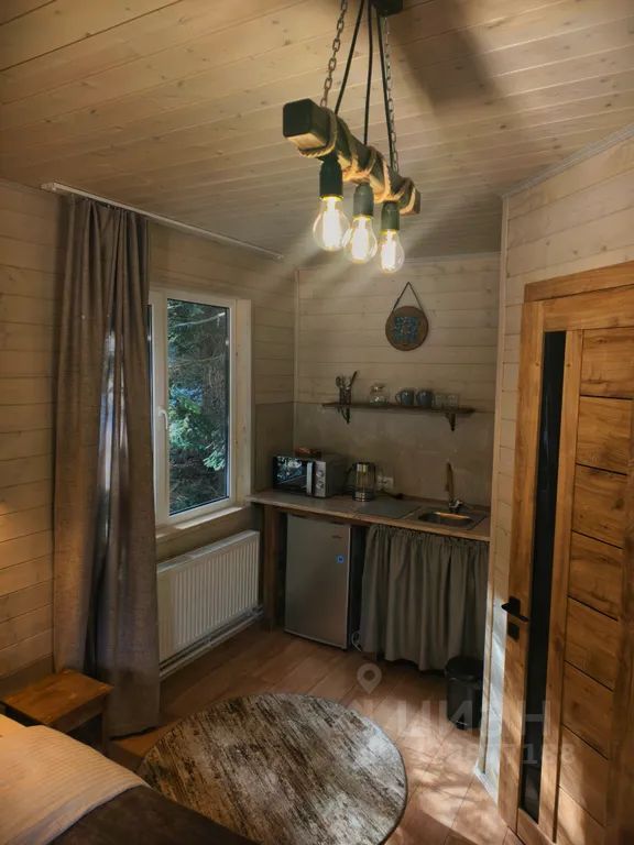 Мини-кухня (холодильник, микроволновая печь, чайник, плита), совмещённый санузел,