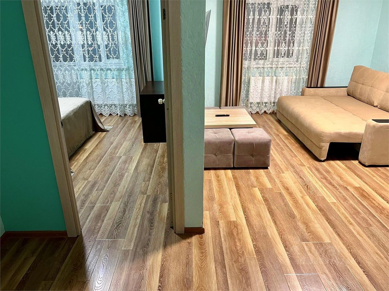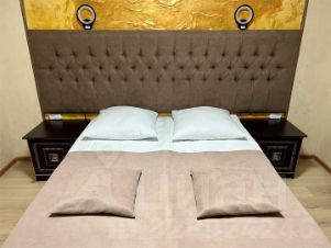 Двухкомнатный четырехместный улучшенный номер с балконом. В номере: 1 двуспальная кровать, раскладной диван, телевизор с плоским экраном, кабельное телевидение, интернет/телефония, Wi-Fi, фен, ванная комната, зеркало, стол, вешалки, пуфик, багажная тумба, тумбы, шкаф для одежды.