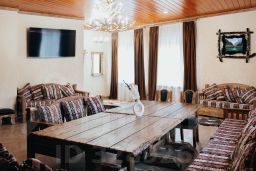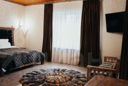 Дизайн выполнен в альпийском стиле. В стоимость проживания включено посещение двух СПА комплексов на протяжении всего отдыха. В номере двухспальная кровать с комфортным ортопедическим матрасом, два двуспальных дивана, кухня и обеденный стол. Номер оснащен плазменной панелью со спутниковыми каналами, караоке, WI-FI, холодильником. Два санузла, в ванной комнате предлагаются: косметические средства, фен.