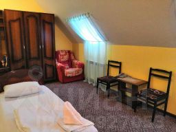 Уютный номер, оборудованный всем необходимым для комфортного проживания. В номере: две 1,5-спальные кровати, прикроватные тумбочки, светильники, шкаф для одежды, кресло, журнальный столик, стулья, холодильник, телевизор. Санузел с душем, туалетные принадлежности, набор полотенец.
