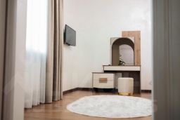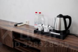 ЛЮКС двухкомнатный оформленные в современном стиле . В каждом номере по 2 кондиционера, 2 телевизора, диван и два кресла, журнальный и туалетный столики, холодильник и телефон,двуспальная кровать, тумбочки прикроватные. В ванной комнате душевая, санузел с зеркалом и феном, полный комплект туалетных принадлежностей, по 3 комплекта полотенец (для лица и тела) и ножное, халаты, тапочки. В номерах чайники электрические с посудой чайной и столовой, чай/кофе и вода бутылированная.