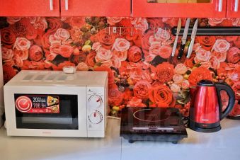 В числе удобств — микроволновая печь и эл. Чайник. Гости могут отдохнуть на собственной террасе и воспользоваться принадлежностями для барбекю. Мангальная зона рядом. Летом на территории обустроена детская игровая площадка. Зимой в шаговой доступности горка для катания на тюбинге. Парковка бесплатная рядом с виллой