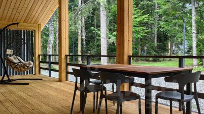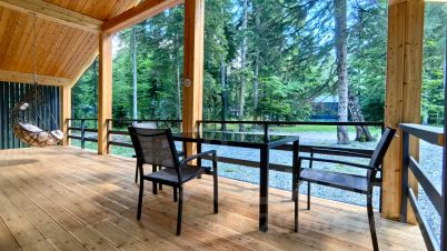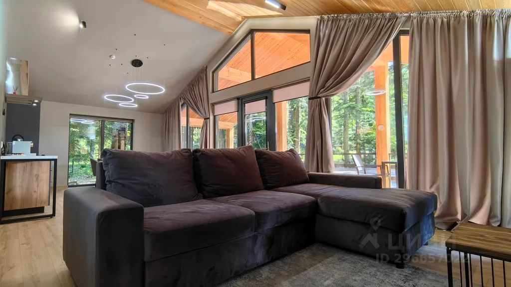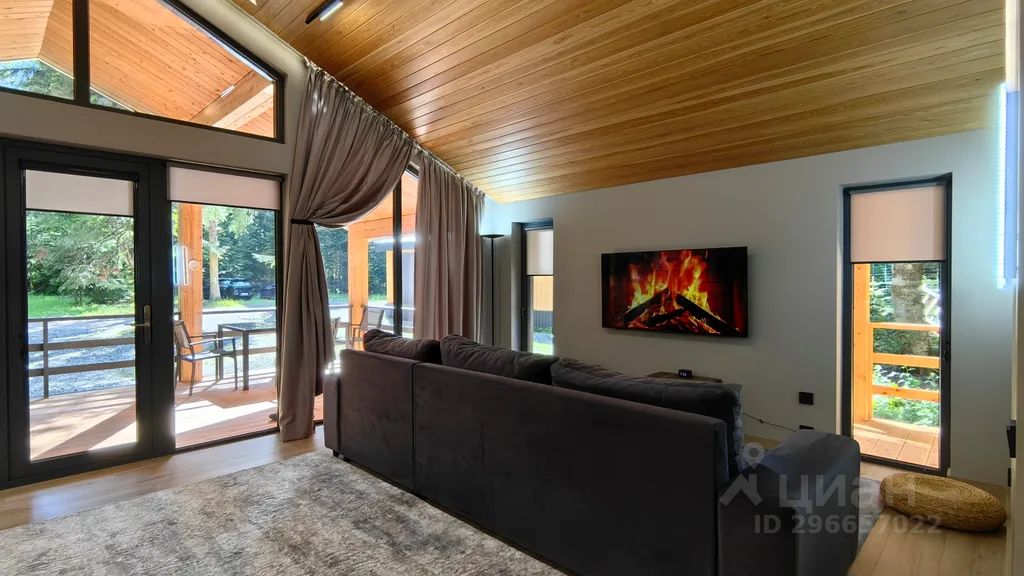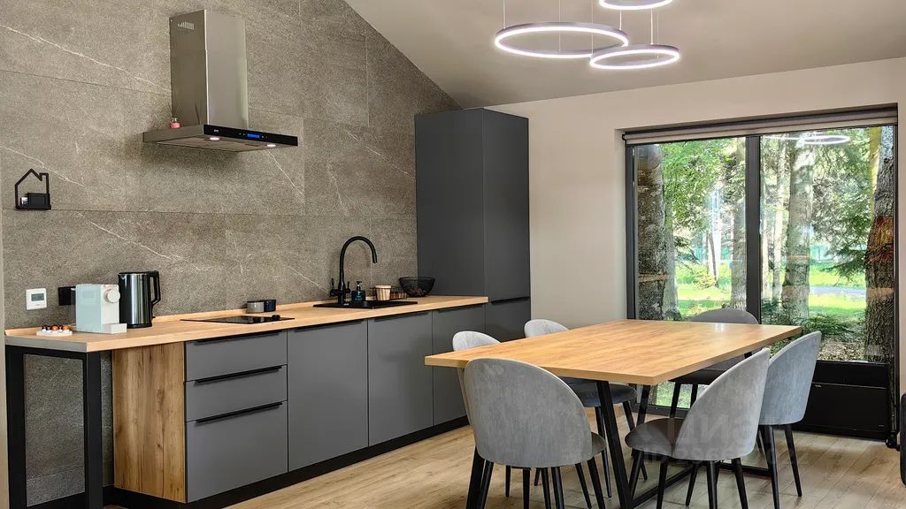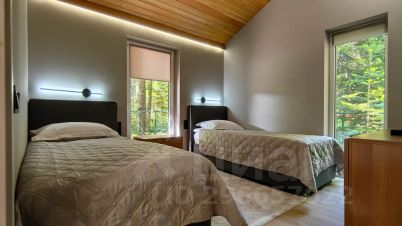 В доме 2 спальные комнаты, в хозяйской спальне большая двуспальная кровать, телевизор со Смарт ТВ. Во второй спальне две односпальные кровати, по запросу можно их соединить в одну двуспальную. Также телевизор со Смарт ТВ. Кухня-гостиная оснащена вытяжкой, электрической плитой, микроволновой печью, электрическим чайником, кофемашиной, встроенным фильтром для питьевой воды а также полноразмерным холодильником с морозильной камерой. В гостиной части комнаты имеется большой двухместный диван-кровать и телевизор со Смарт ТВ. Также в коттедже есть сушка для обуви на 5 пар, будь то лыжные ботинки или ваша повседневная обувь. В собственном санузле есть все необходимое (шампунь, гель для душа, мыло, зубные щетки с пастой, фен, полотенцесушитель, также полотенца трех типов (тело, лицо и ноги) тапочки и халаты)