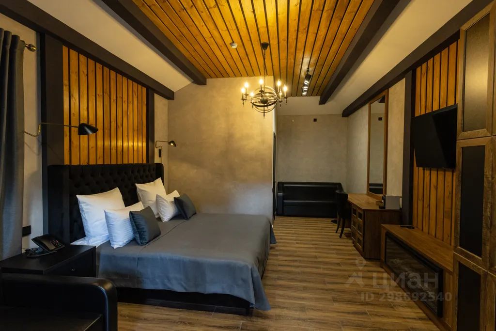 В самом доме вас ожидает двуспальная кровать напротив уютного камина. Удобная мебель украшает интерьер, придавая ему шарм и элегантность, а продуманная до мелочей душевая комната дополнит комфорт вашего пребывания. Здесь вы сможете насладиться абсолютной уединенностью и полной свободой, создавая идеальную обстановку